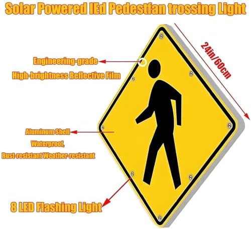 Enhance safety and visibility with our Solar-Powered LED Crosswalk Sign, designed to stand out in various environments. Constructed from durable aluminum with a thickness of 1.5mm, this sign is built to withstand tough weather conditions, ensuring long-lasting performance. With an impressive LED brightness exceeding 6000 millidits, it provides clear visibility from up to 0.5 miles away, making it an essential addition to pedestrian safety measures. Ideal for urban areas, schools, and construction zones, this crosswalk sign operates efficiently between -40°F and 140°F, ensuring reliability in extreme temperatures. Its IP65 waterproof rating guarantees protection against rain and moisture, while the solar-powered feature allows for eco-friendly operation with a battery life of up to 5 days even in overcast weather. Installation is straightforward. Simply mount the sign in an unobstructed location, ensuring the solar panel is positioned to capture maximum sunlight. Regular maintenance, such as cleaning the solar panel every three months, will help maintain optimal performance. This sign is perfect for municipalities looking to enhance pedestrian safety while reducing energy costs. Remember to test the LED function prior to installation and turn off the switch during extended periods of inactivity to preserve battery life. The sign’s compact dimensions of 60cm by 60cm (24 by 24 inches) make it highly visible without being obtrusive. By choosing our Solar-Powered LED Crosswalk Sign, you are investing in a safer community, providing clear guidance for pedestrians while promoting sustainability. Make a responsible choice for safety today!
